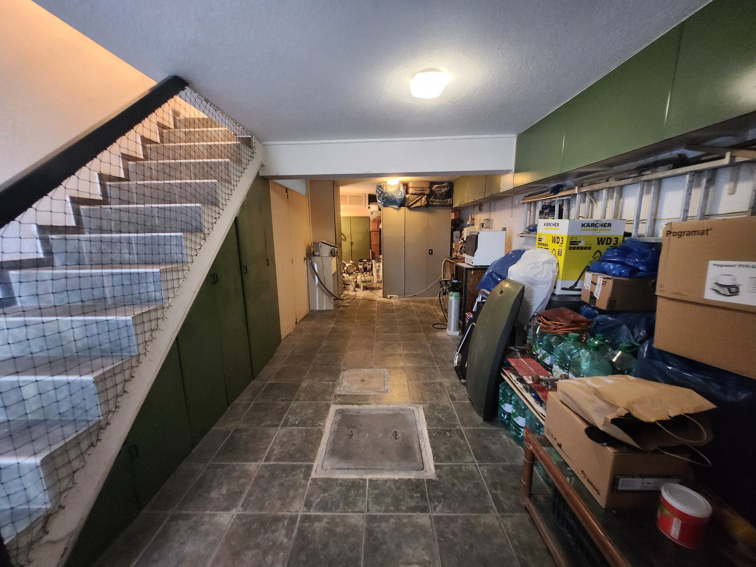 Ingreso vehicular para garaje con capacidad 2 autos y comunicación interna dentro de la casa