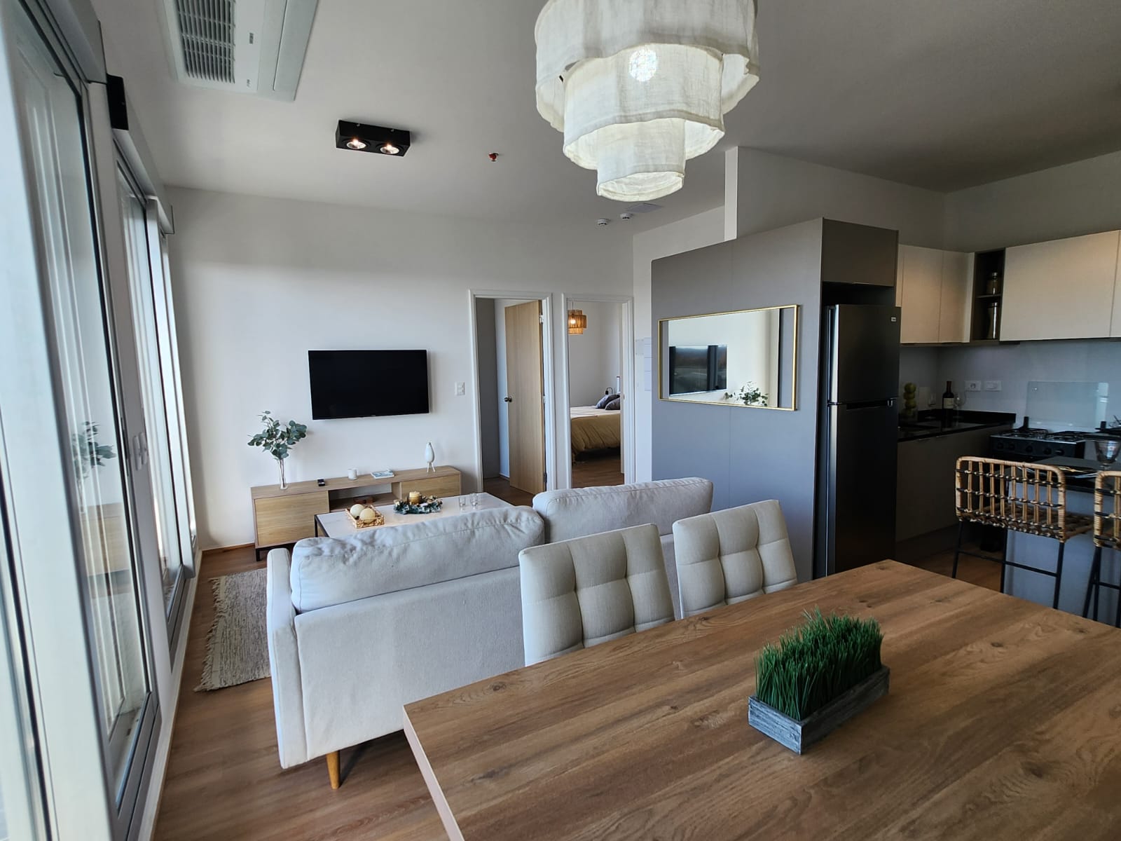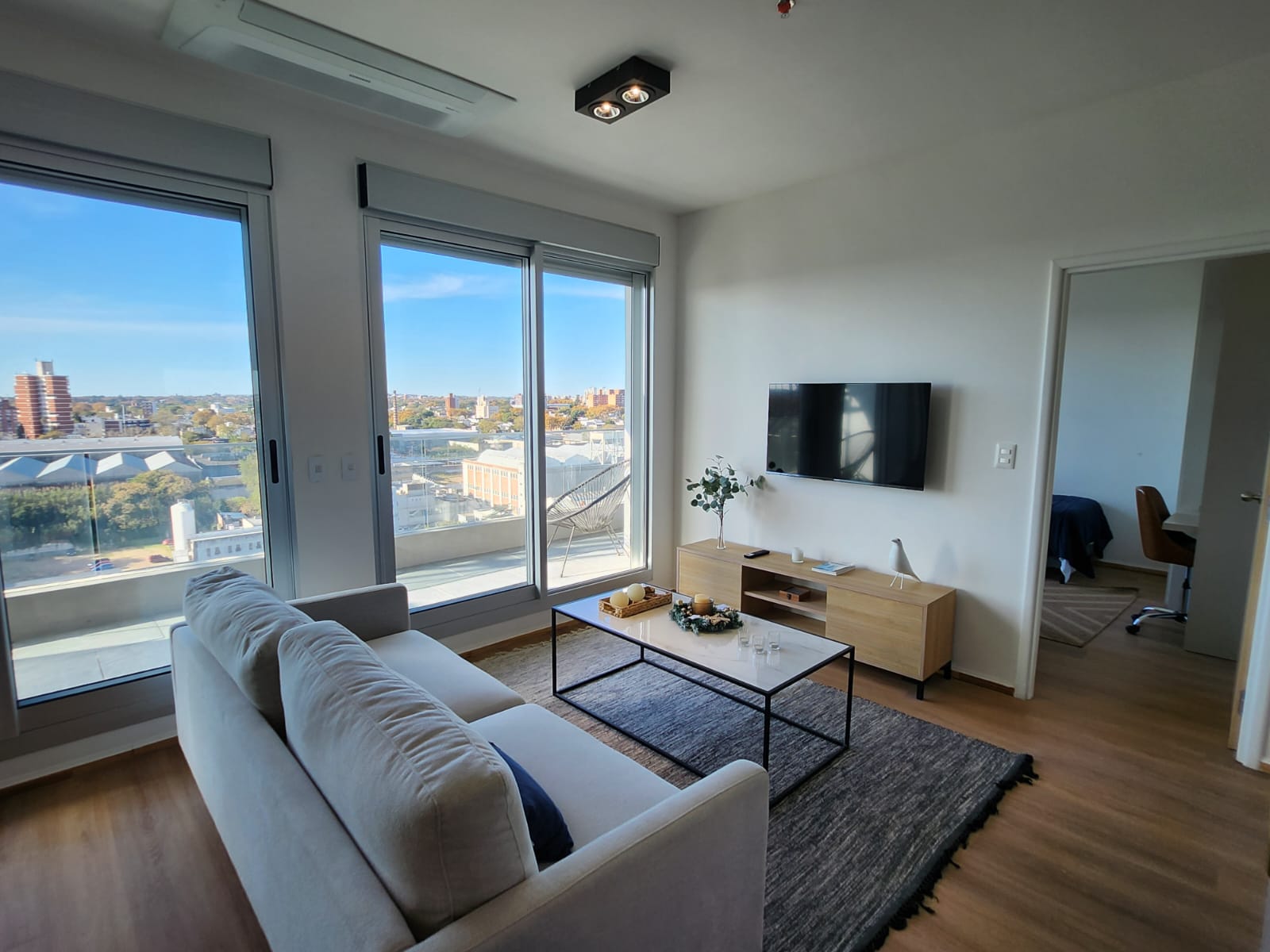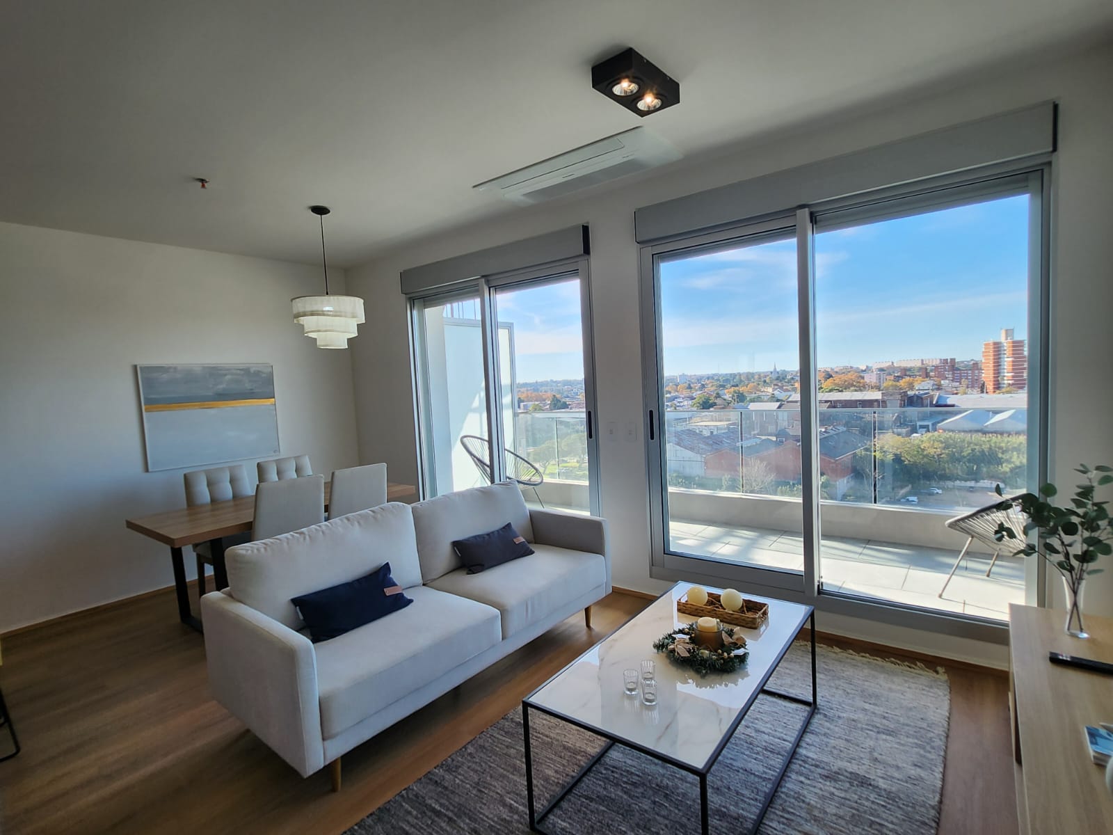 Excelente calidad y terminaciones. Equipado con aire acondicionado inverter multisplit, placard para lavado y calefon, cortinas de enrollar electricas en living y dormitorio, placard en dormitorio, cocina con campana y mueble bajo y sobre mesada y mas.