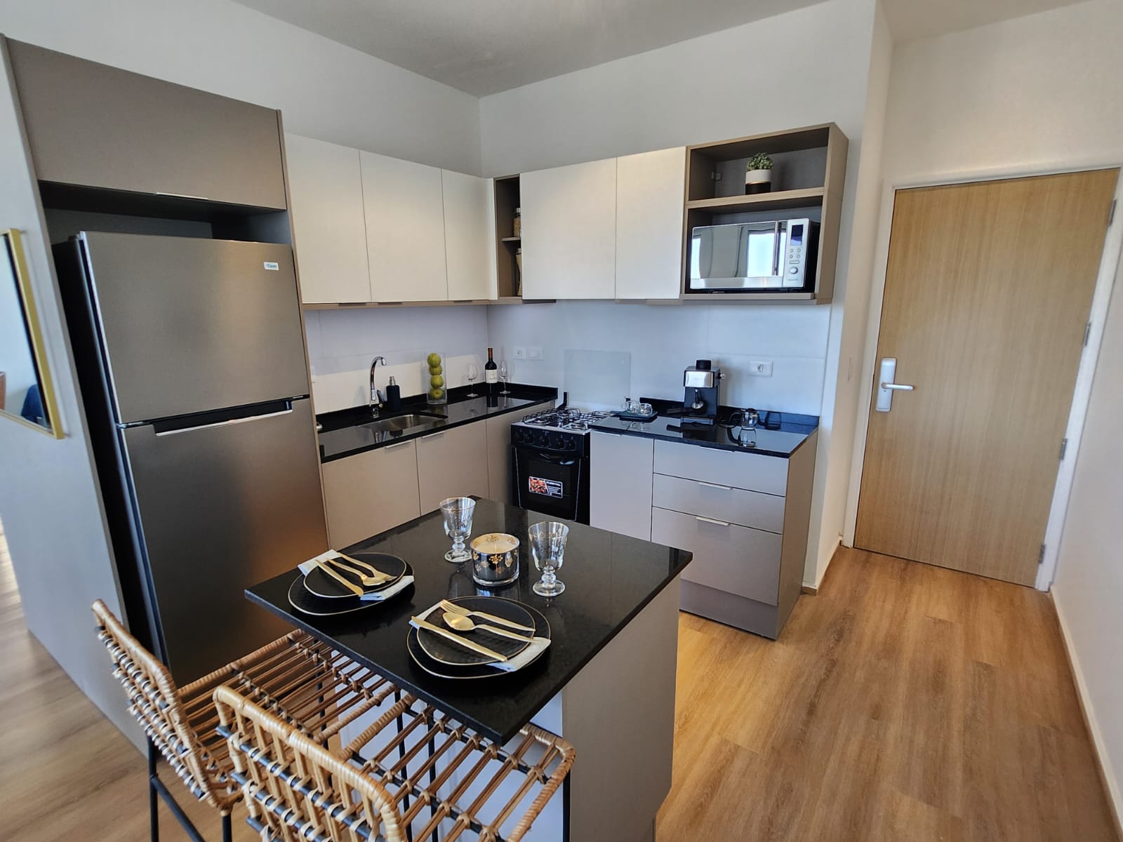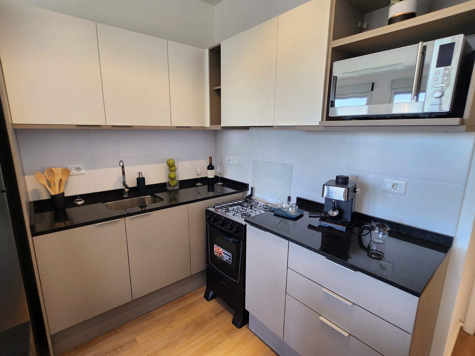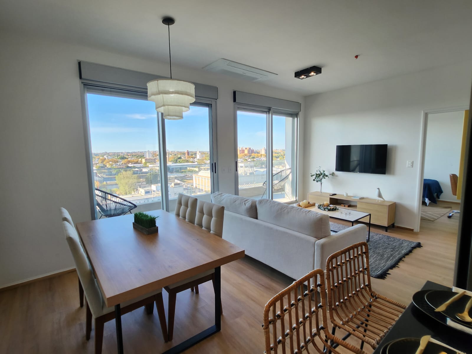 Excelente calidad y terminaciones. Equipado con aire acondicionado inverter multisplit, placard para lavado y calefon, cortinas de enrollar electricas en living y dormitorio, placard en dormitorio, cocina con campana y mueble bajo y sobre mesada y mas.